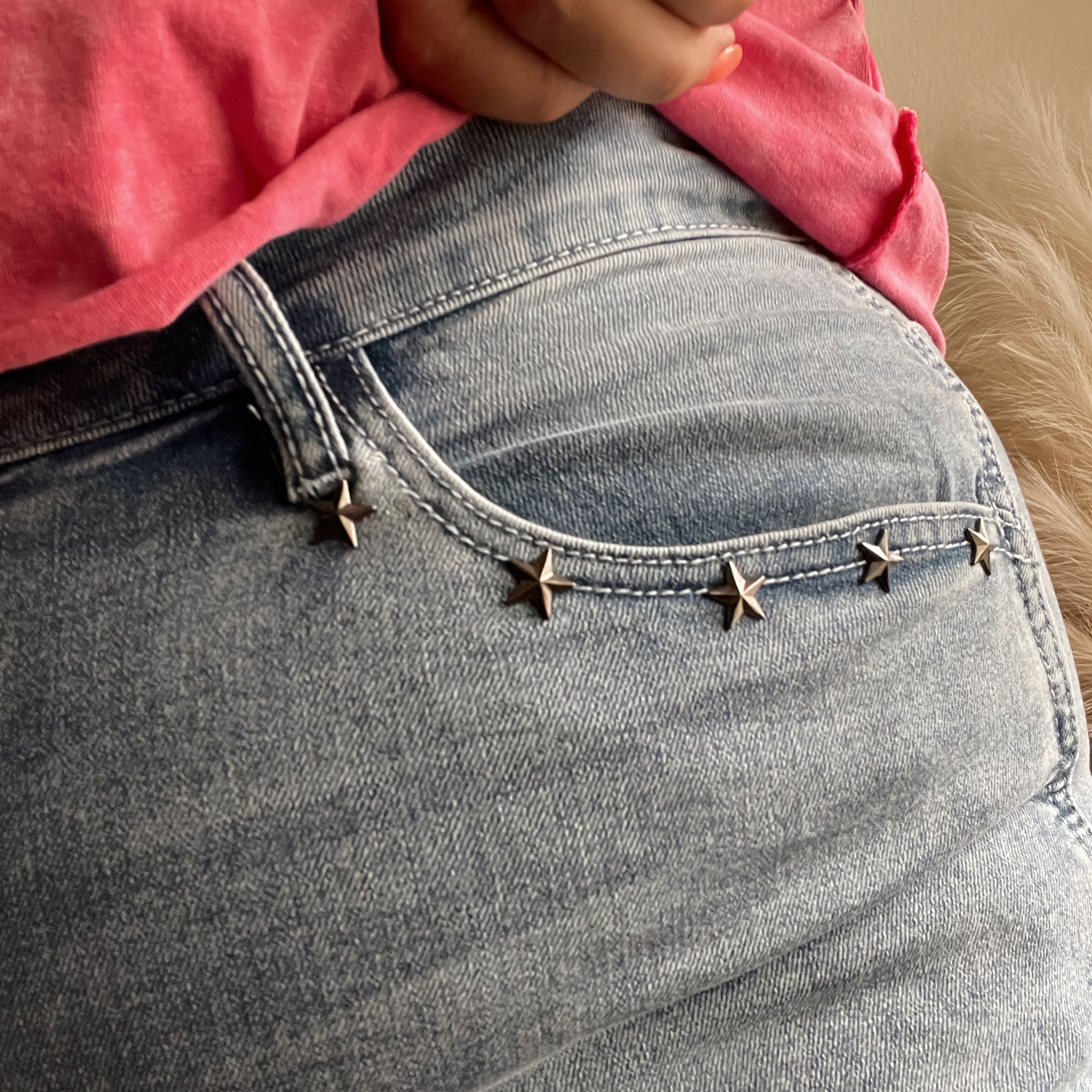 Saddle up in style with our Rodeo Star Shorts — the perfect blend of classic denim and western flair. These high-rise shorts feature a soft, worn-in wash with raw hem edges for that effortlessly cool look. And the best part? The subtle star stud accents along the pocket give just the right amount of shine for your everyday adventures — whether you’re headed to the feed store, farmers market, or front porch sittin’.